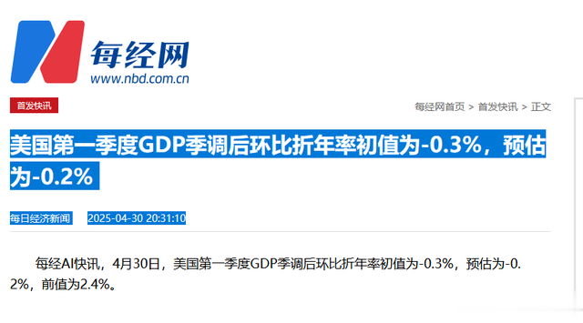 美国一季度GDP7.3万亿美元