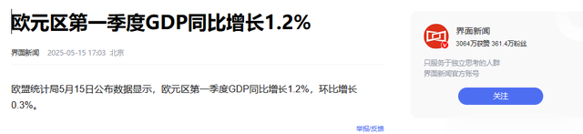 现在对比中美与欧盟,欧盟一季度GDP总量排第二,但增速上不占优势,美国虽然增速不高,但人家经济体量大。
